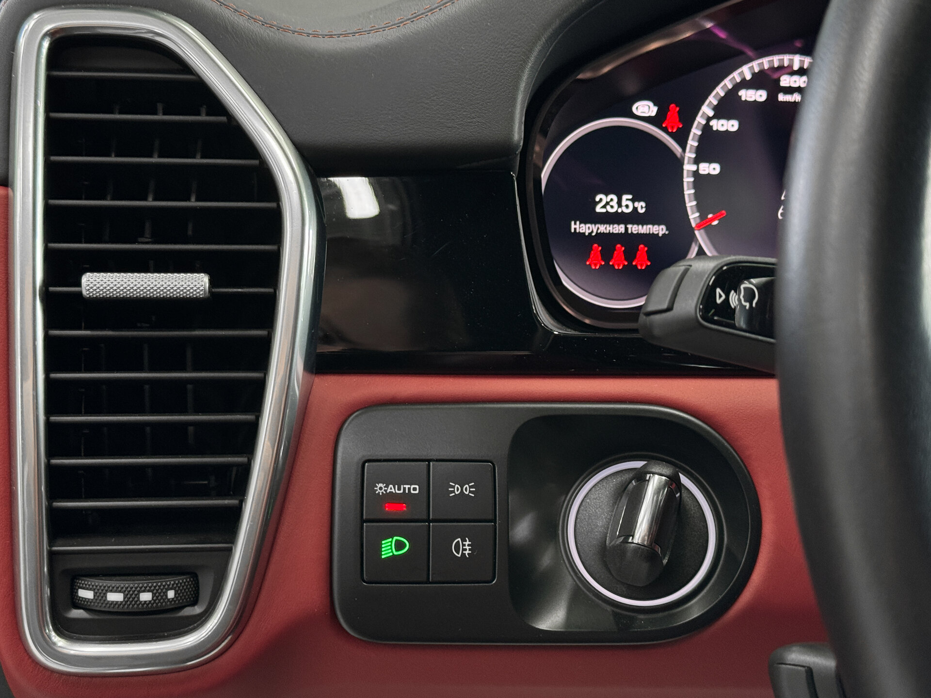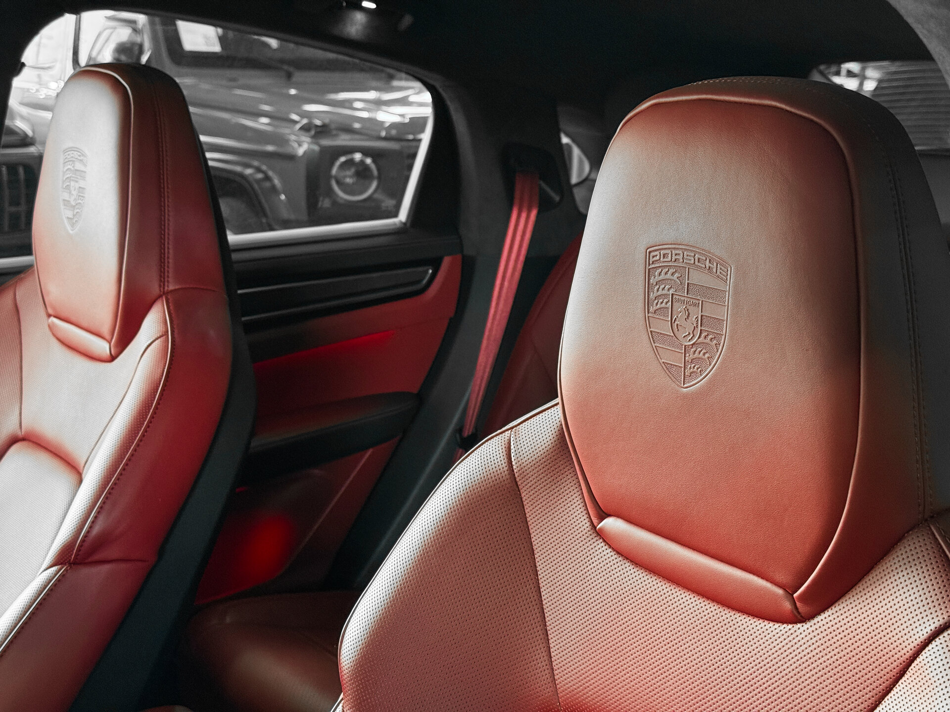 — Цвет салона: красная кожа